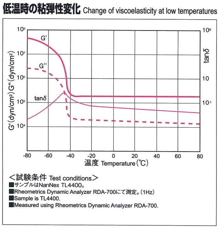 <試験条件>■サンプルはナンネックスTL4400 Rheometrics Dynamic Analyzer RDA-700にて測定(1Hz)