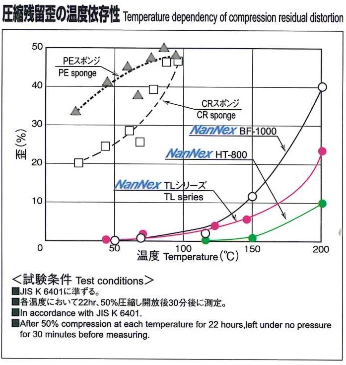 <試験条件>■JIS K 6401に準ずる。各温度において22Hr、50%圧縮し開放後30分後に測定。
